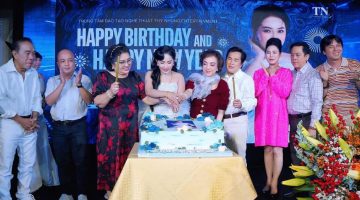 Khánh Loan cùng MC – ca sĩ Trương Bảo Xuyên, ca sĩ Duy Trường, Khưu Huy Vũ, Dương Hồng Loan