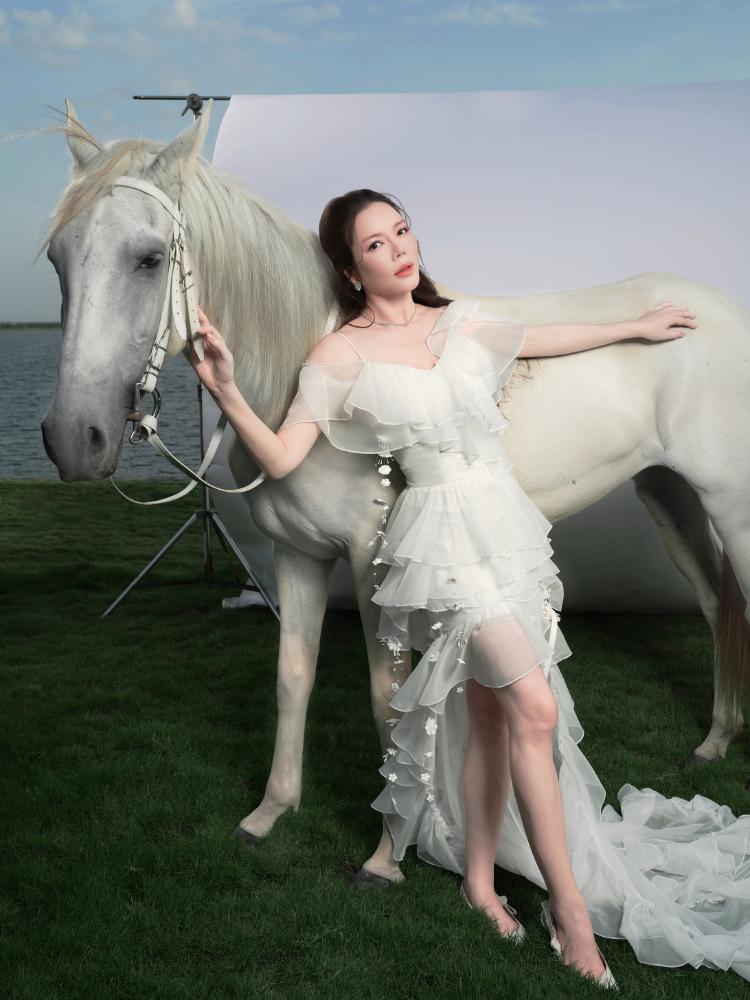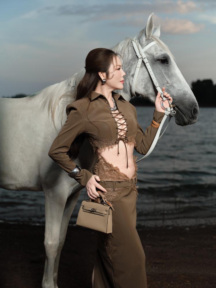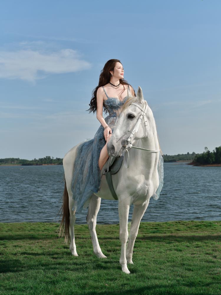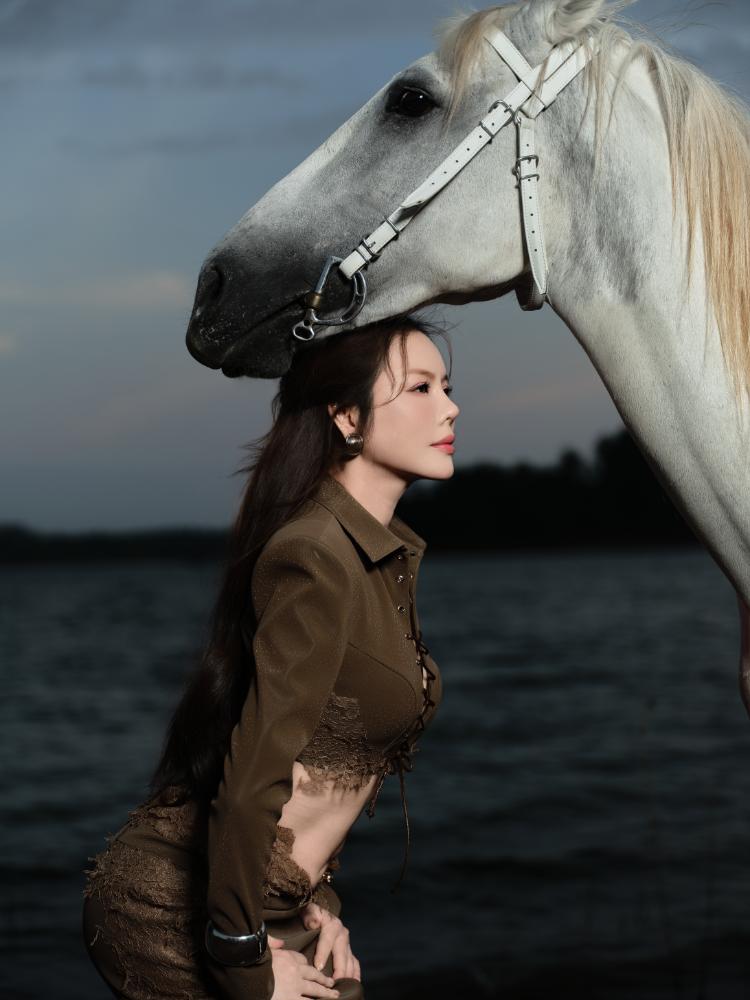 Hình ảnh Lý Nhã Kỳ sánh bước bên ngựa trong khuôn viên resort ven sông gợi liên tưởng đến tinh thần tự do, bền bỉ và mạnh mẽ – những giá trị thường được gắn với con giáp Ngọ. Trong từng khung hình, nữ diễn viên không cần tạo dáng cầu kỳ mà vẫn thể hiện rõ khí chất riêng: ánh mắt sắc sảo, thần thái tự tin và phong thái chậm rãi của một người phụ nữ hiểu rõ giá trị bản thân.