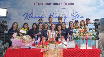NSƯT Kim Tiểu Long, Bình Tinh, Hồng Loan, Thùy Dung chụp ảnh lưu niệm cùng Thượng tọa Thích Minh Kiến – Trụ trì chùa Hưng Long